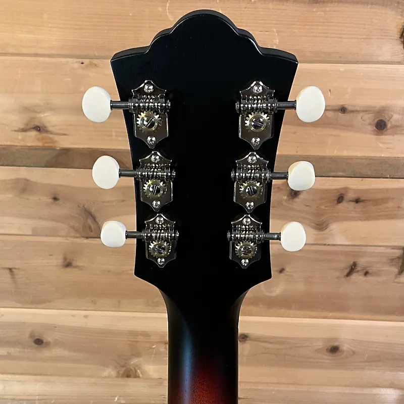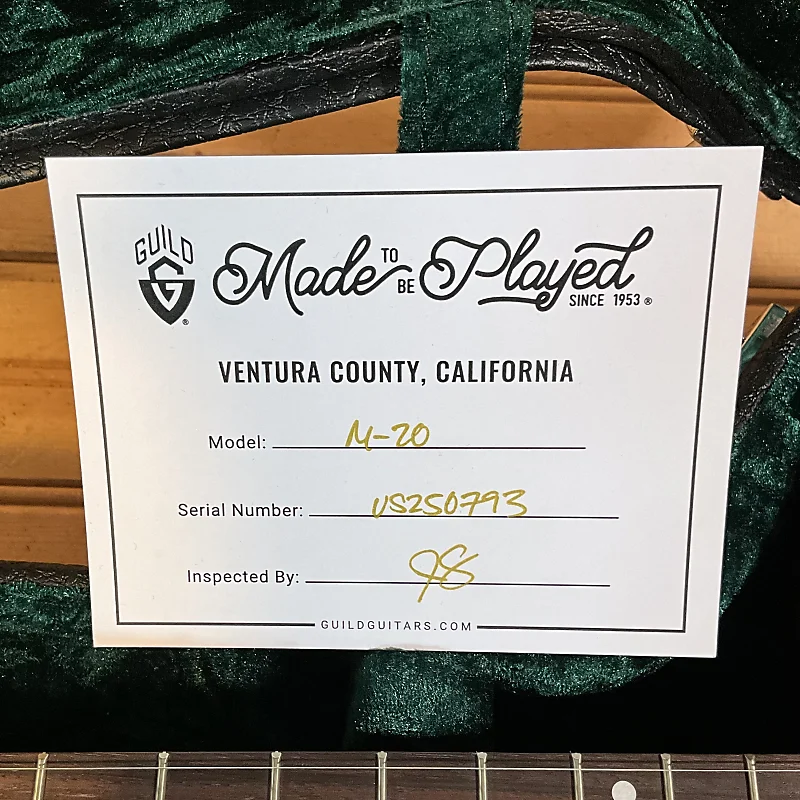 Знаковая модель Guild M-20 была первой гитарой, сошедшей с производственной линии в 1967 году, когда компания выросла настолько, что переехала на новый завод в Вестерли, штат Род-Айленд. Почти 50 лет спустя история повторилась на совершенно новом, современном предприятии в Калифорнии. M-20 - это акустическая концертная гитара с корпусом из цельного красного дерева (верх, спинка и стороны), неофициально прозванная «гитарой Ника Дрейка» за ее появление на обложке альбома Дрейка Bryter Layter. Она оснащена розовым мостом и грифом, костью на порожке и седле, а также очень легким сатиновым покрытием, что позволяет гитаре действительно «петь». Скромные детали M-20 включают винтажную розетку и логотип Guild на головке грифа, выложенный из перламутра. Каждая M-20 поставляется с вручную подписанным, номерным сертификатом подлинности и жестким футляром. Доступна в вариантах Natural и Vintage. Санберст, натуральный с датчиком LR Baggs (M-20E Nat), и Санберст с датчиком LR Baggs (M-20E VSB).