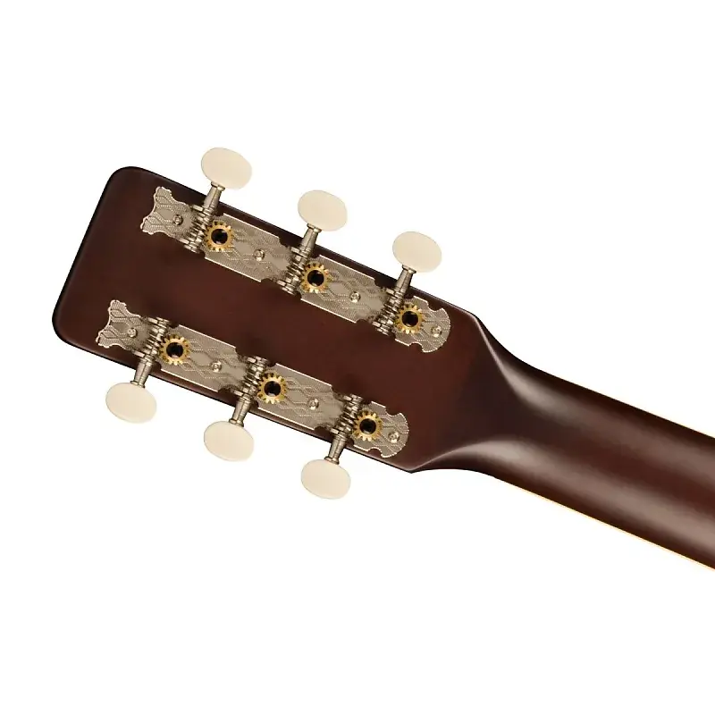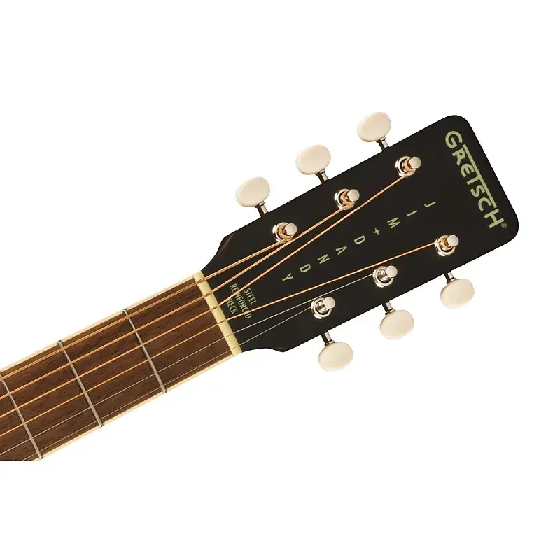 Корпус с X-образным усилением выполнен из тщательно подобранной легкой ламинированной древесины, обеспечивая оптимальное сочетание теплого винтажного звука и надежной долговечности, а гриф формы «C» предлагает приятное ощущение для длительного вдохновения в старинном стиле. Детали, соответствующие эпохе, такие как мост в винтажном стиле с заклепками, декоративная накладка с графикой «G», окрашенное кантовое окантование, открытые механические колки 3-в-одной-рамке и крупные точечные вставки на грифе, создают ностальгичный характер, подходящий для любого выступления или джем-сейшена.