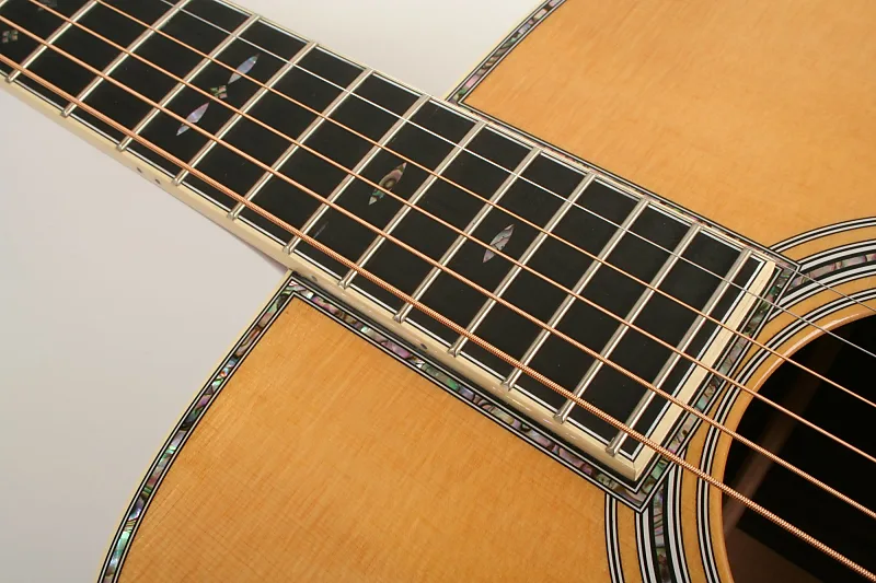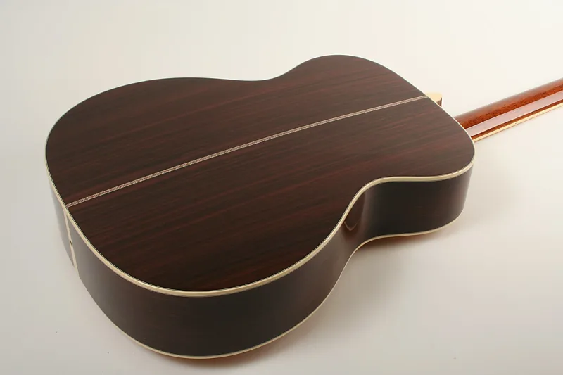 Стильный дизайн серии 40 добавляет изысканность классическому тону и ощущению спины и боковин из индийского розового дерева, верхней деке из сколопендровой ели с X-образной распоркой и ручного подгонки шипового соединения грифа. Настроечные колки открытого типа, окантовка кремового цвета, полированная глянцевая отделка, защитная накладка цвета черепахи и инкрустация из перламутра придают блеск и превосходный тон. Длинная мензура и элегантный модифицированный низко-овалный гриф с узким сужением обеспечивают комфортное и приятное звучание при игре на аккордах и переборе в течение долгих часов.