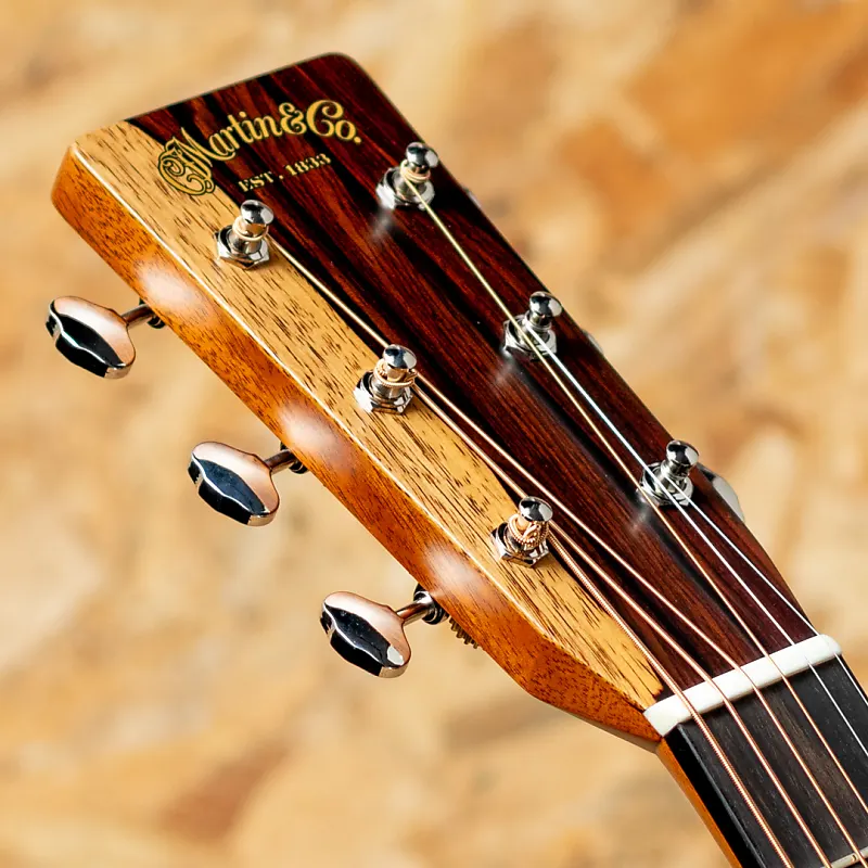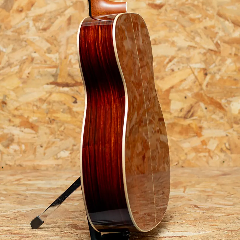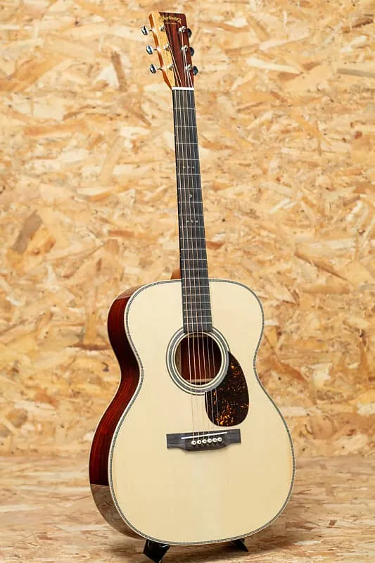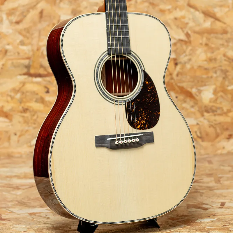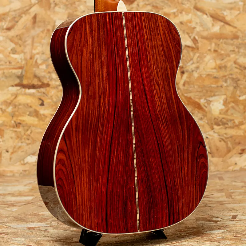 Среди существующих фабрик Martin, «Martin Custom Shop» создает лучшие гитары, используя выдающиеся технологии и большой опыт. Это подразделение высшего класса, которое производит кастомные модели с высоким уровнем совершенства, включая производство серии Authentic Series, которая в последние годы пользуется большой популярностью. Этот инструмент является настраиваемой моделью “CTM OM-28 Adirondack Spruce × Cocobolo”, основанной на корпусе OM. Верхняя дека из ели Адирондак, боковые стенки и задняя дека из кокоболо, гриф из красного дерева, накладка и мост из эбена, колки Grover с открытой задней частью, перламутровая накладка на грифе в стиле Foden, длинная струностойка, ребристая система Adirondack spruce X brace с выемками, клеевой клей, ультратонкое лаковое покрытие. Ширина верхнего порожка - 42,9 мм и форма грифа изменена до низкого овала. Инструмент имеет спецификации, специально разработанные чтобы достичь точно наилучшего возможного звучания, и у него потрясающее давление звука и громкость. Размер OM имеет небольшой корпус и длинную дека, что обеспечивает удобство игры и сбалансированное звучание. В верхнем материале нет тонировки, поэтому можно наслаждаться естественным цветом. Выглядит просто, но характеристики на высшем уровне. Меня не устраивает обычный "OM-28". Это одна из моделей, которую я бы порекомендовал тем, кто ее любит.