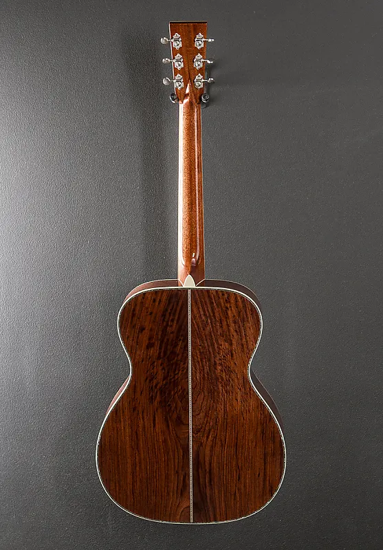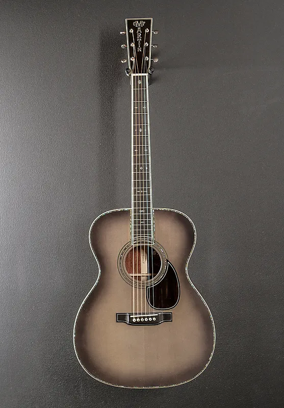 "В честь 20-й годовщины популярной модели John Mayer OM-28JM Martin снова сотрудничала с John Mayer, чтобы представить эту великолепную высококлассную юбилейную модель. В своей первой фирменной модели с Martin Джон выбрал алюминиевую окантовку вокруг головки грифа и бриджа. В этой юбилейной модели окантовка расширена до верхней деки и накладки грифа, а материал окантовки обновлен до тонкого серебра, что будет прекрасно выглядеть на протяжении всей жизни гитары. Помимо впечатляющей отделки верхней деки Platinum Gray Burst, этот инструмент также имеет уникальное легкое покрытие из угольного тона на задней части и боках, создающее тонкое сияние, отличающееся от других отделок из палисандра. Как и предыдущие модели Mayer, она имеет более узкую ширину у верхнего порожка - 1 11/16 дюйма - для комфорта и скорости. Также установлены великолепные сатиновые никелевые колки Waverly. Это издание включает уникальную наклейку с подписью Майера."