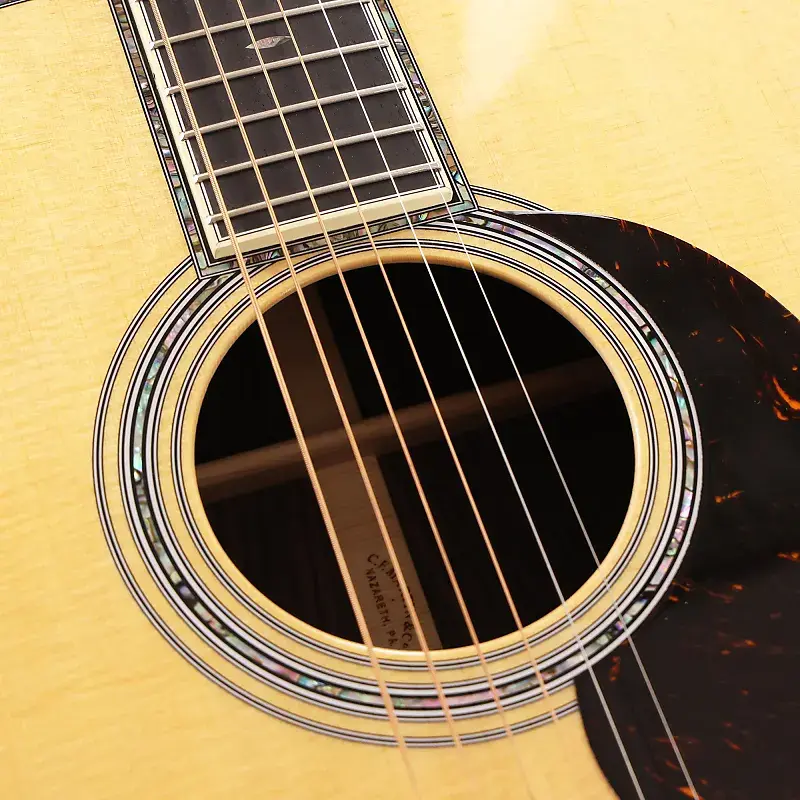 Martin 000-42 представляет собой надежное сочетание тембра и мастерства, предназначенное для музыкантов, которые ценят исключительное звучание и впечатляющие визуальные детали. Аудиторская форма корпуса обеспечивает сбалансированный тон по всем шести струнам, с глубокими басами, богатыми обертонами и чистыми верхними нотами, подходящими для любого стиля игры. Ручная работа с цельной верхней декой из ели и цельной спинкой и боками из индийского палисандра придает 000-42 резонансный, теплый звук. Глянцевая шея из натурального красного дерева с профилем Golden Era (GE) Modified Low Oval, высокой производящей конусностью и длиной мензуры 24,9" обеспечивает легкость игры и точность. Гитара украшена изысканными деталями из абалона, включая снежинки на грифе из эбена с окантовкой, сверкающую розетку и перламутровую отделку на деке, которая элегантно оборачивается вокруг грифовой накладки. Комплектуется антикварной белой окантовкой, эбоновым бриджем с костяными штырями и золотыми открытыми колками, 000-42 - это гитара, которой можно доверять, чтобы раскрыть внутреннего художника.