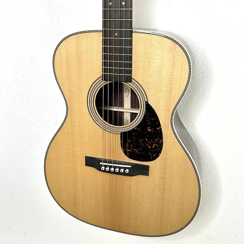 OM-28 Modern Deluxe - это новый взгляд на Martin Vintage. Эта гитара наполнена индивидуальными особенностями и современными технологиями, которые вам нужно увидеть, ощутить и услышать лично. Среди винтажных элементов - верхняя дека из ели с системой VINTAGE TONE SYSTEM (VTS), соединение грифа «ласточкин хвост» и конструкция на основе натурального белкового клея, которые придают ей богатый, полностью выдержанный звук Martin, вдохновляющий поколения. Внешний вид отличается от всего, что мы производим на данный момент: европейская кленовая оплетка, стильные золотые лады, открытые золотые колки и уникальный логотип в стиле 1930-х, инкрустированный перламутром на голове грифа. Среди ультрасовременных особенностей - мостовые штифты Liquidmetal с красными точками и композитная мостовая плата из углеродного волокна, усиливающая громкость. Также применена новая форма грифа с легкой асимметрией для максимального комфорта игры вдоль и поперек ладов. Эта гитара совсем не стандартная.