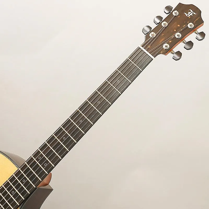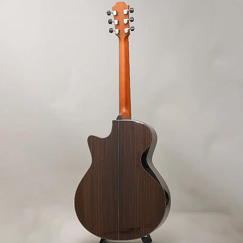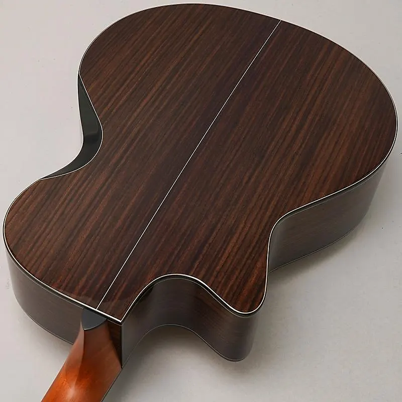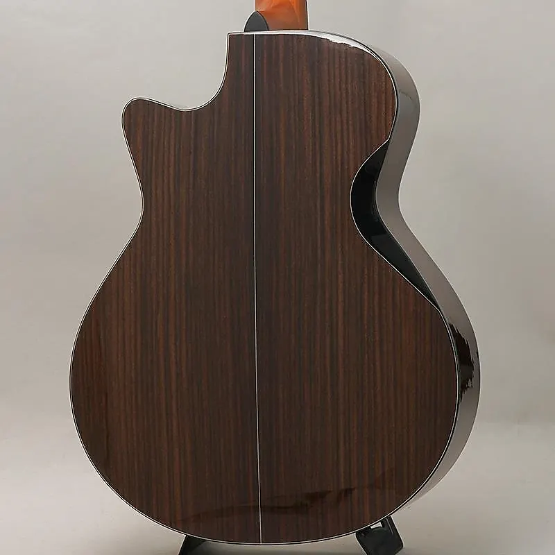 Верхняя дека изготовлена из ели Sitka высшего сорта AAA, а задняя дека и обечайки - из индийского палисандра сорта AA.
