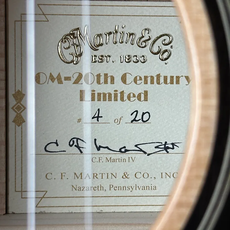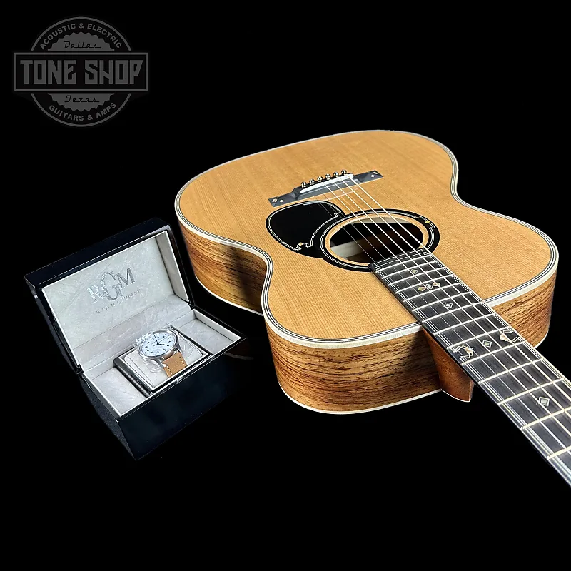 Все на борт! Мартин и пенсильванский часовщик RGM снова объединились, чтобы создать что-то по-настоящему уникальное - OM 20th Century Limited. Чествуя технологии и инновации, это ограниченное по тиражу произведение ручной работы отдает дань пассажирскому поезду того же имени, вдохновленному стилем Арт Деко, который революционизировал путешествия в середине 1930-х годов - примерно в то время, которое станет известно как «Золотая эпоха» компании Martin, когда инструменты компании начали менять мир музыки. Эта гитара полна сложных элементов дизайна, включая инкрустацию, вдохновленную стримлайнерами, по всей гитаре, европейскую окантовку из пламени клена, золотые колки с открытой задней частью и инкрустированный накладкой из эбенового дерева. OM 20th Century Limited также оснащена конструкцией на клее из животного сырья, верхом из ели VINTAGE TONE SYSTEM (VTS) и корпусом и боками из гуатемальского красного дерева для превосходного звучания. Гитара даже поставляется с индивидуальными, ручной работы часами на железнодорожную тематику от известного часовщика RGM. Всего было выпущено 20 таких элегантных OM 20th Century Будет выпущено ограниченное количество гитар.