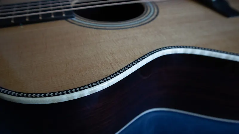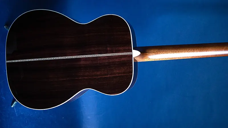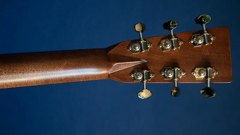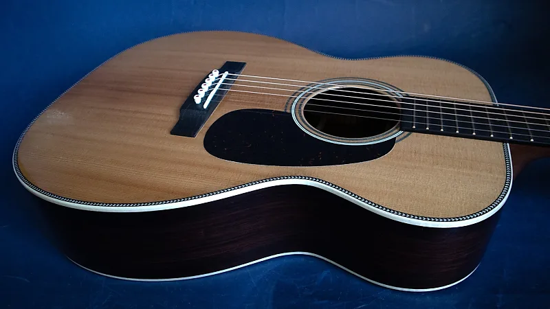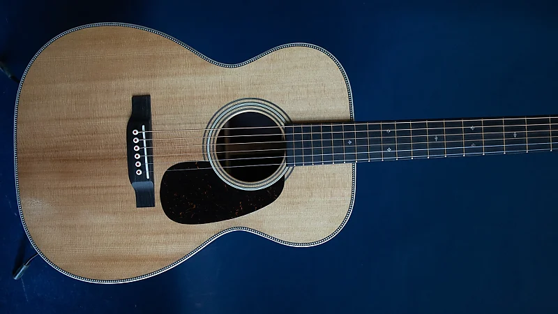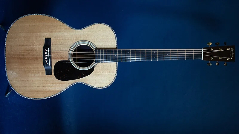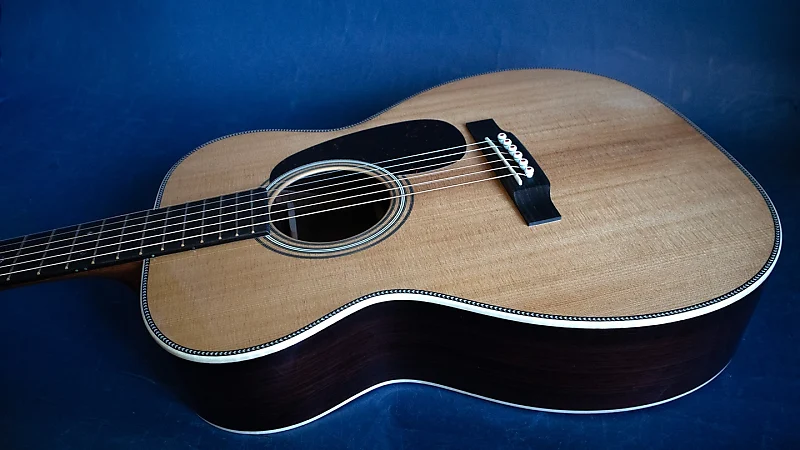 Детали включают окантовку из европейского клена с фактурой “пламя”, отделку верхней деки в стиле «елочка», гриф из черного дерева с инкрустацией из перламутра в виде ромбов и квадратов, а также врезанный логотип Martin в стиле 1930-х на головке грифа. Настройщики с открытой спинкой из золота и конструкция на натуральном белковом клее сохраняют гитару в духе винтажных моделей, а колки Liquidmetal для струн, карбоновая плата под бридж, золотые лады и расстояние между струнами 2 5/32" придают современный штрих.