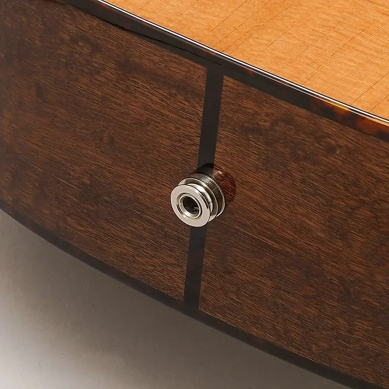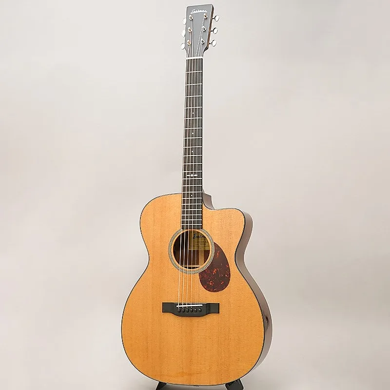 С верхней дека из торфицированной массивной ели Ситка, цельными боками и задней декой из кленового с экзотическим рисунком и насыщенным средним диапазоном, грифом из красного дерева с накладкой из эбенового дерева и красивой глянцевой отделкой, эта гитара оснащена вырезом для легкой игры на верхних ладах и звукоснимателем, идеально подходящим для выступлений на сцене с высокой громкостью.