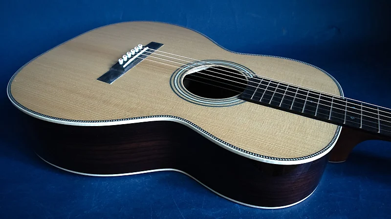 Натуральный, корпус размера 00 с оснащением Style 28, верхняя дека из цельной ели Адирондак с обработкой Martin VTS (Vintage Tone System), задняя дека, обечайки и накладка головы из цельного индийского палисандра, резные X-образные распорки, гриф из красного дерева с накладкой из эбенового дерева, украшенной абалоном длинным узором из ромбов и квадратов, мензура 24,9 дюйма с шириной верхнего порожка 1 13/16” и расстоянием между струнами 2 1/4” на эбеновом пирамида-бридже. К этому всему добавляются передовые функции серии Modern Deluxe от Martin, включая мостовые колышки из Liquidmetal, композитную карбоновую пластину моста и чрезвычайно удобный профиль грифа «High Performance Taper». Звучание громкое, но при этом четкое и интимное, премиальные материалы и выдающееся качество сборки. Поставляется в заводском жестком футляре и имеет пожизненную гарантию, произведено в Назарете, Пенсильвания, США.