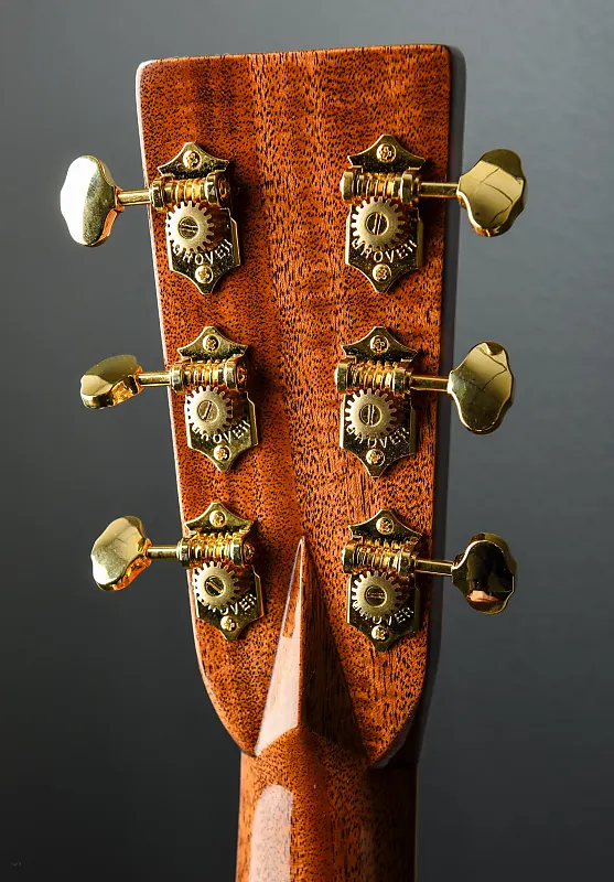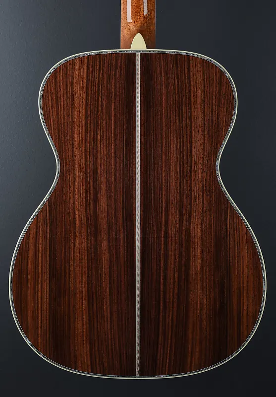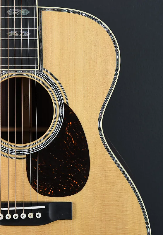 Естественная глянцевая отделка, корпус формы 000-14 Fret, верх из цельной ели, розетка из абалона с многополосным узором, резонансная дека Golden Era с ребрами X, задняя и боковые части из массива индийского палисандра, лицевая окантовка Antique White с инкрустацией из абалона с многополосным узором на верхней, задней и боковых частях, стиль 45 с черным узором на задней деке, модифицированная дека Golden Era с низким овальным профилем и высокой производительностью, шея из отборной древесины, гриф из черного дерева с позиционными маркерами в виде шестиугольников Style 45 из абалона, мензура 25,4”, ширина порожка 1 3/4”, колки открытой конструкции Grover, с жестким футляром