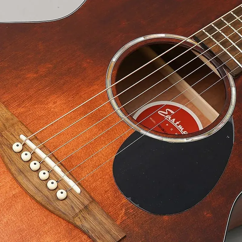 Верхняя дека выполнена из материала, обработанного с применением фирменной технологии Eastman, Thermo-Cure, что обеспечивает отличную отзывчивость даже у новой гитары и создает богатый звук, напоминающий инструмент, на котором долгое время играли.