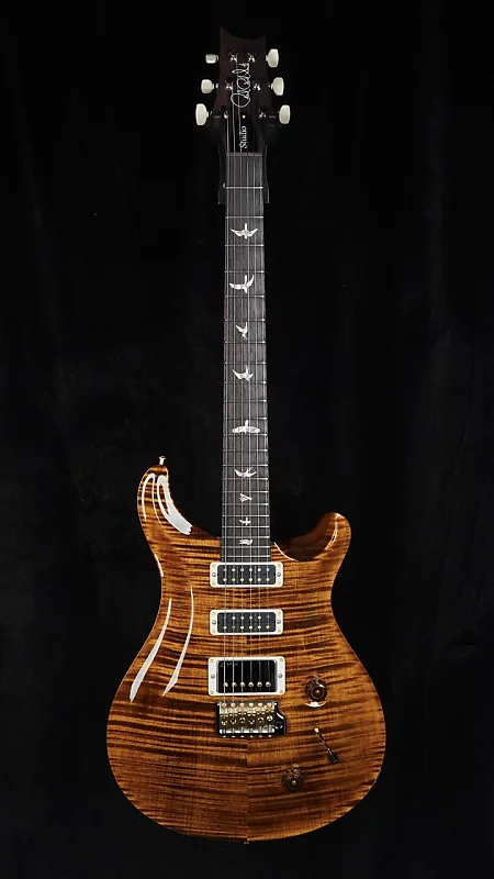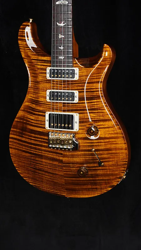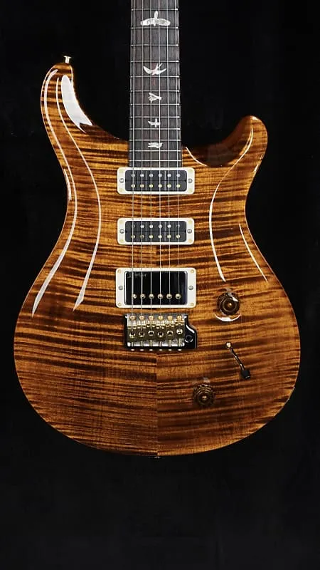 Эта новая модель PRS Studio 2025 года выполнена в цвете Black Gold. Она оснащена улучшенной опцией фигурной кленовой накладки "10-Top" и гибридной фурнитурой.