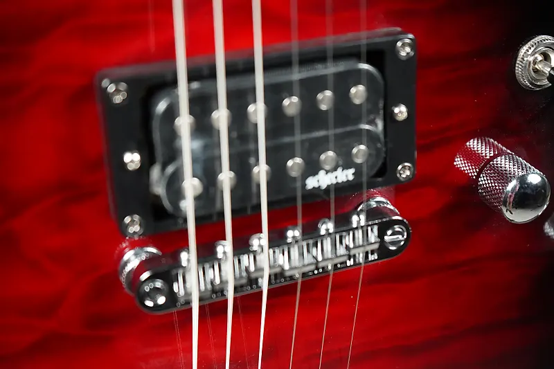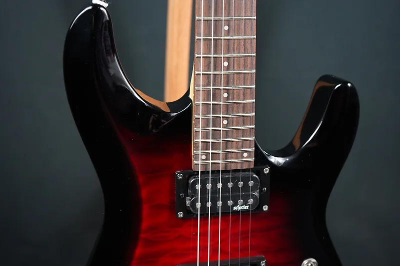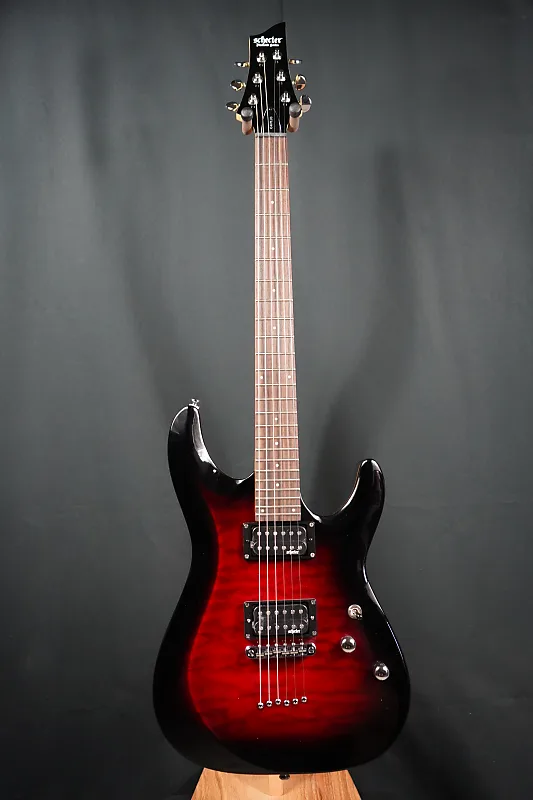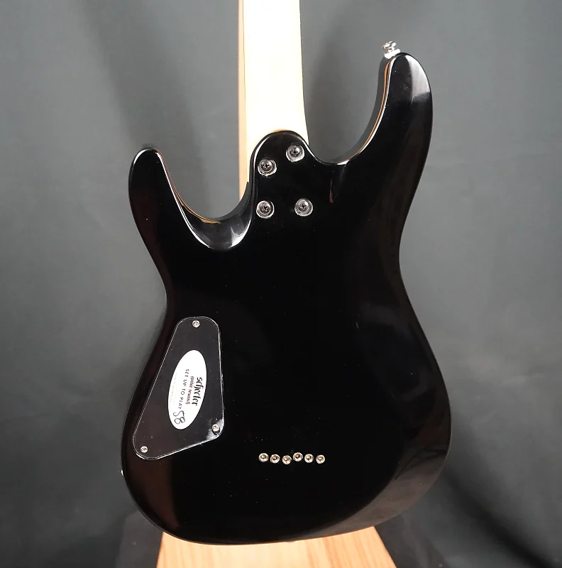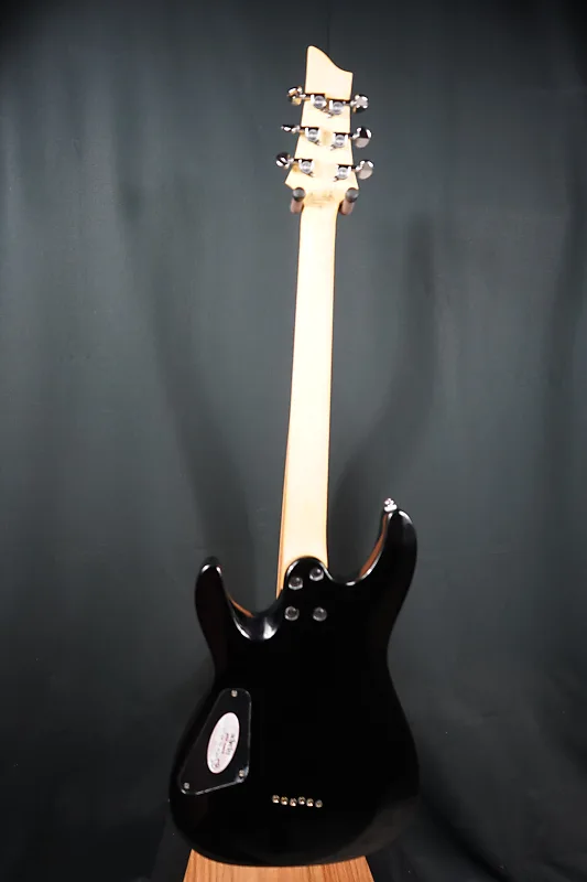 Палисандровый гриф оснащен 24 экстра-джамбо-ладами на ультраплоском радиусе 14 дюймов, что облегчит изгибание струн без усилий. Панель управления включает в себя регуляторы общей громкости и тембра, а также 3-позиционный тумблер селектора звукоснимателей. Завершает аппаратное обеспечение набор тюнеров Schecter для плавной и точной настройки.