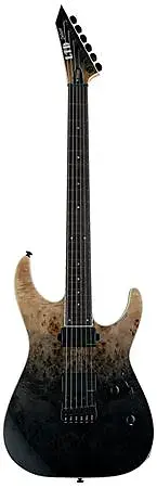 Электрогитара M-1000HT предлагается с потрясающей крышей из тополя с узором «бурль», обработанной в цвете Black Natural Fade. Она оснащена конструкцией neck-thru-body с корпусом из ольхи и сверхтонкой трехсекционной шейкой из клена формы U (с натуральной сатиновой отделкой на тыльной стороне для максимальной скорости игры). Звукосниматели - прямой установки Fishman Fluence Modern Humbuckers (Alnico на позиции у грифа, Ceramic на позиции у бриджа), с управлением push-pull для активации второго звучания. Также оснащена жестким мостом Hipshot с конструкцией string-thru-body.