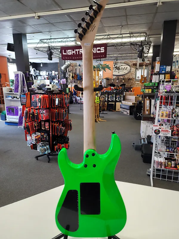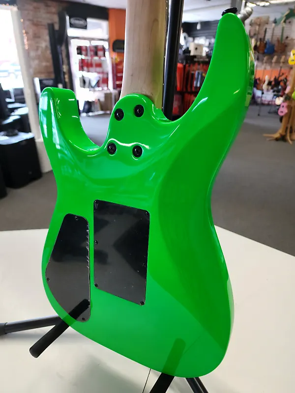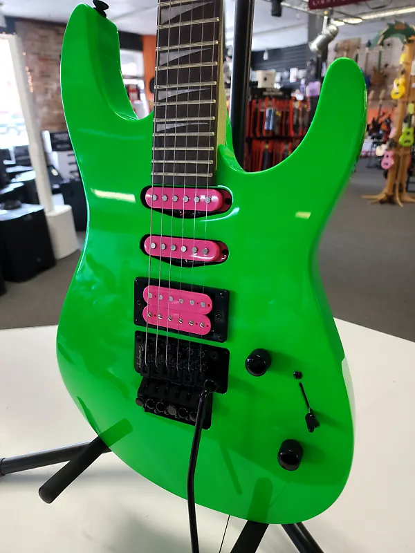 Привлекательный как по звучанию, так и по стилю, X Series Dinky DK3XR HSS представлен в глянцевом черном, кобальтовом синем и неоново-зеленом цветах с подобранной по цвету обратной головкой Jackson с острыми 6-струнными колками и черной фурнитурой. Модель Gloss Black также оснащена белыми катушками звукоснимателей и белым логотипом Jackson на головке грифа, а модели Cobalt Blue и Neon Green - розовыми катушками и розовым логотипом на головке грифа.