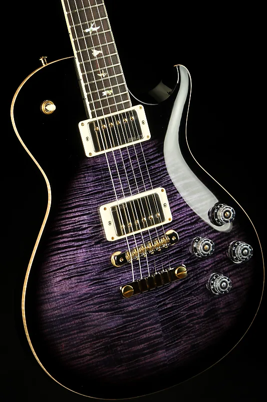 Этот PRS McCarty Singlecut 594 в цвете Purple Mist предлагает множество великолепных тонов благодаря превосходным тонам, отобранным вручную: фигурный огненный клен, задняя часть и гриф из красного дерева и накладка на гриф из розового дерева. Классический! И это великолепное послевкусие. Это не что иное, как красота.