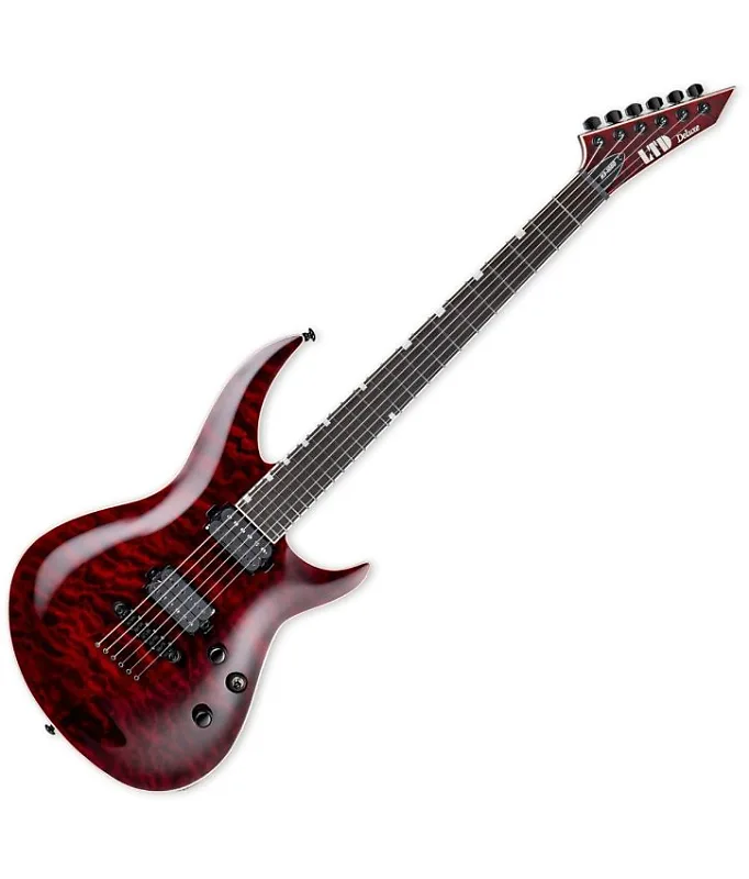 ESP LTD H3-1000QM в цвете See Through Black Cherry представляет собой вершину дизайнерской мысли в серии LTD 1000, предназначенной для профессиональных музыкантов, которые требуют от своих инструментов превосходного звучания, ощущения, внешнего вида и мастерства изготовления.