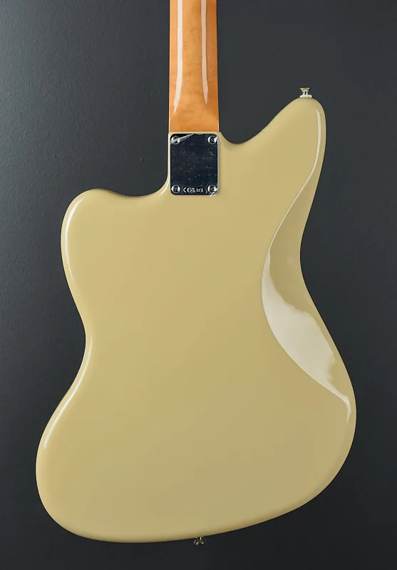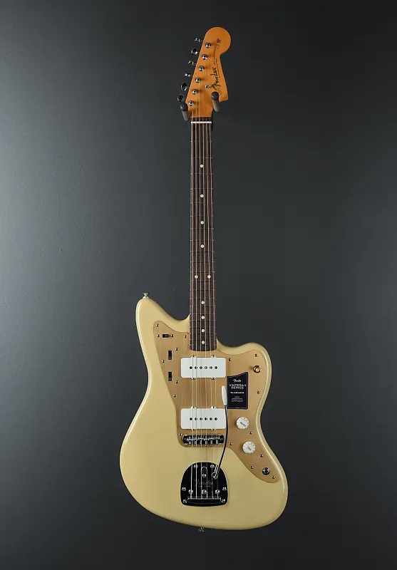 Цвет Desert Sand, произведено в Мексике, корпус из ольхи с глянцевой полиэфирной отделкой, гриф из клена формы Late 50's C с радиусом 7.25” и накладкой из палисандра с высоким винтажным ладом, длина мензуры 25.5", ширина порожка 1.650", стильные винтажные сингл-котловые звукосниматели Jazzmaster для бриджа и грифа, 3-позиционный тумблер с управлением громкостью и тоном, а также управляющие цепи лида (переключатель вниз): общая громкость, общий тон; цепь ритма (переключатель вверх): два колесика для регулировки громкости и тона грифа, регулируемый винтажный мост и плавающий тремоло с кнопкой блокировки, винтажные колки, вес 7.8 фунтов, с чехлом для гитары