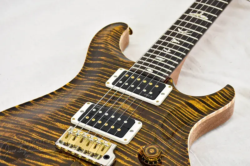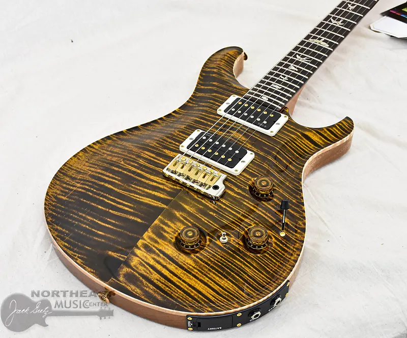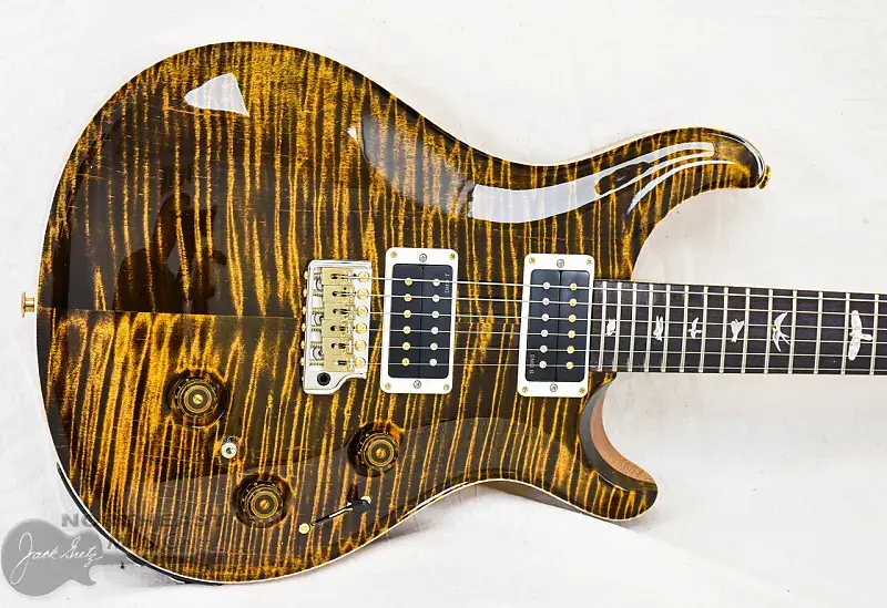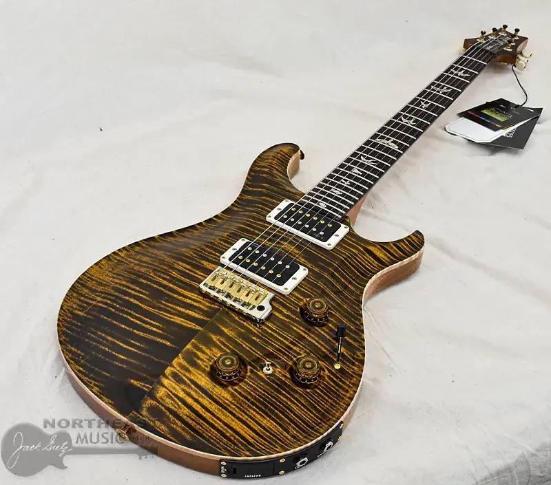 PRS Custom 24 Piezo в отделке Yellow Tiger - это высшее воплощение культового дизайна Пола Рида Смита, сочетающее потрясающую эстетику с непревзойденной тональной универсальностью. Завершенный эффектной верхней декой Yellow Tiger, этот Custom 24 имеет великолепную резную фигурную кленовую деку и корпус из резонирующего красного дерева, обеспечивая богатый тон и сустейн, которыми славятся гитары PRS.