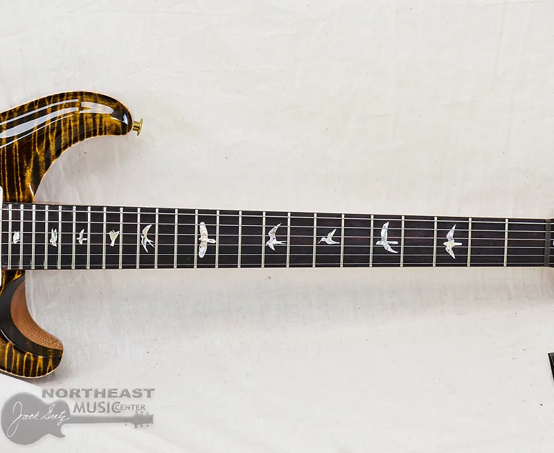Гриф Pattern Thin из красного дерева с накладкой из палисандра обеспечивает молниеносную игру и комфорт на всех 24 ладах, в то время как запатентованный тремоло бридж PRS Gen III обеспечивает невероятную стабильность настройки и выразительное вибрато. Элегантные инкрустации в виде птиц завершают неповторимый образ PRS.