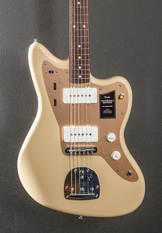 Цвет Desert Sand, произведено в Мексике, глянцевая полиэфирная отделка корпуса, корпус из ольхи, гриф из клена формы C конца 50-х с радиусом 7,25” и накладкой из розового дерева с высокими винтажными ладовыми порожками, длина мензуры 25,5", ширина грифа у верхнего порожка 1,650", звукосниматели Jazzmaster типа Single Coil в стиле 50-х для бриджа и грифа, 3-позиционный переключатель с регуляторами громкости и тембра плюс управление цепью ведущего звучания (ползунок вниз): мастер-громкость, мастер-тембр; управление цепью ритма (ползунок вверх): два колесика для регулировки громкости и тембра звукоснимателя грифа, регулируемый мост в винтажном стиле и плавающий тремоло с кнопкой блокировки, тюнеры винтажного типа, вес 8 фунтов, с чехлом