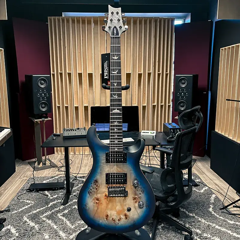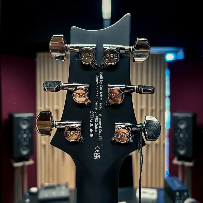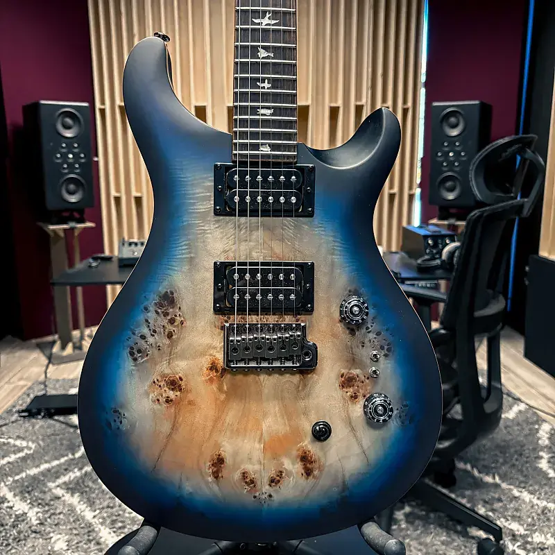SE Custom 24-08, верх из вырезанного капа тополя с задней частью из красного дерева, мензура 25”, гриф из клена с 24 ладами, накладка из палисандра, инкрустация в виде птиц, фирменный тремоло PRS, звукосниматели TCI “S” для высоких и низких частот, регуляторы громкости и тональности с функцией push/pull, 3-позиционный переключатель звукоснимателей, 2 мини-переключателя, чехол Gigbag• Профиль грифа - широкий и тонкий