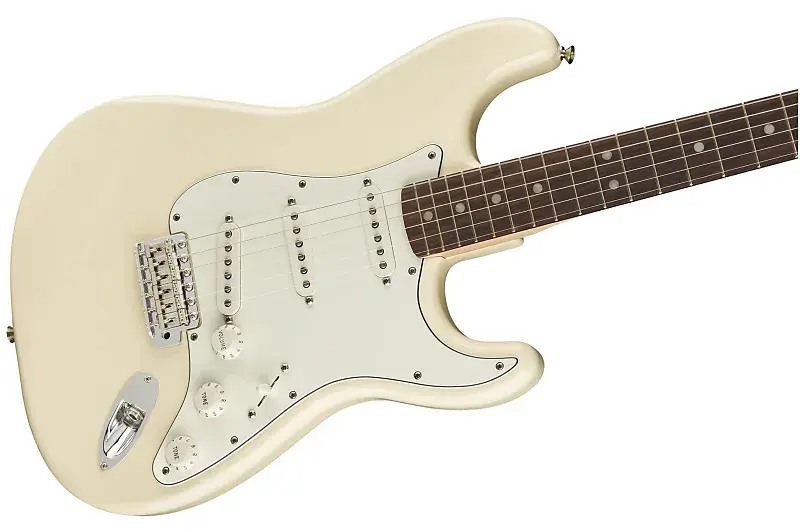Stratocaster Альберта Хаммонда-младшего - это праздничная гитара Альберта Хаммонда, идеально подходящая для его уникального звучания и культового стиля. Фирменная страта олимпийского белого цвета широко использовалась в его работах на протяжении всего каталога The Strokes, а также в его сольной карьере. Fender воспроизвели индивидуальную смену звукоснимателей Хаммонда: положение переключателя звукоснимателей четыре активирует грифовый и бриджевый звукосниматели одновременно, в то время как положения один и три перевернуты по сравнению с традиционной компоновкой. Подпись Хаммонда украшает заднюю часть большой головки в стиле 70-х, а другие черты, вдохновленные 70-ми, включают гайку регулировки стержня грифа в форме пули, 3-болтовую пластину грифа с тиснением «F» с корректной для периода регулировкой Micro-Tilt и логотип той эпохи.