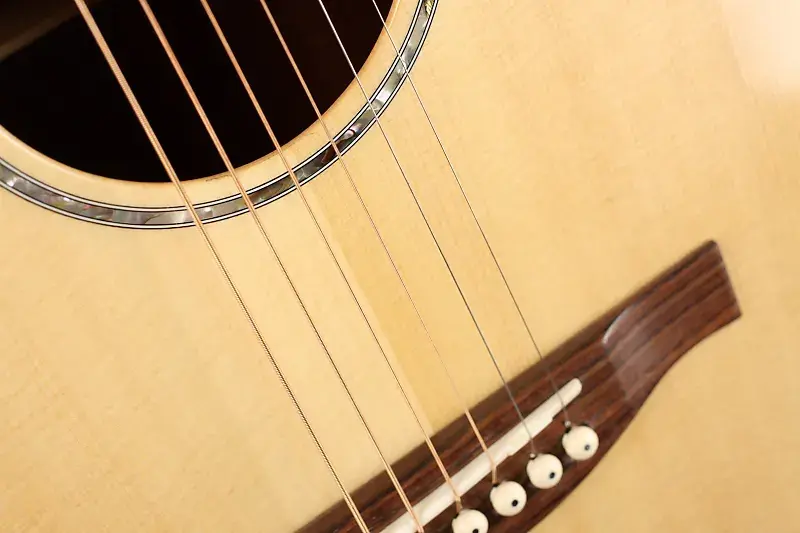 Верхняя дека: массивная ель ситка, глянцевая нитроцеллюлозная отделка