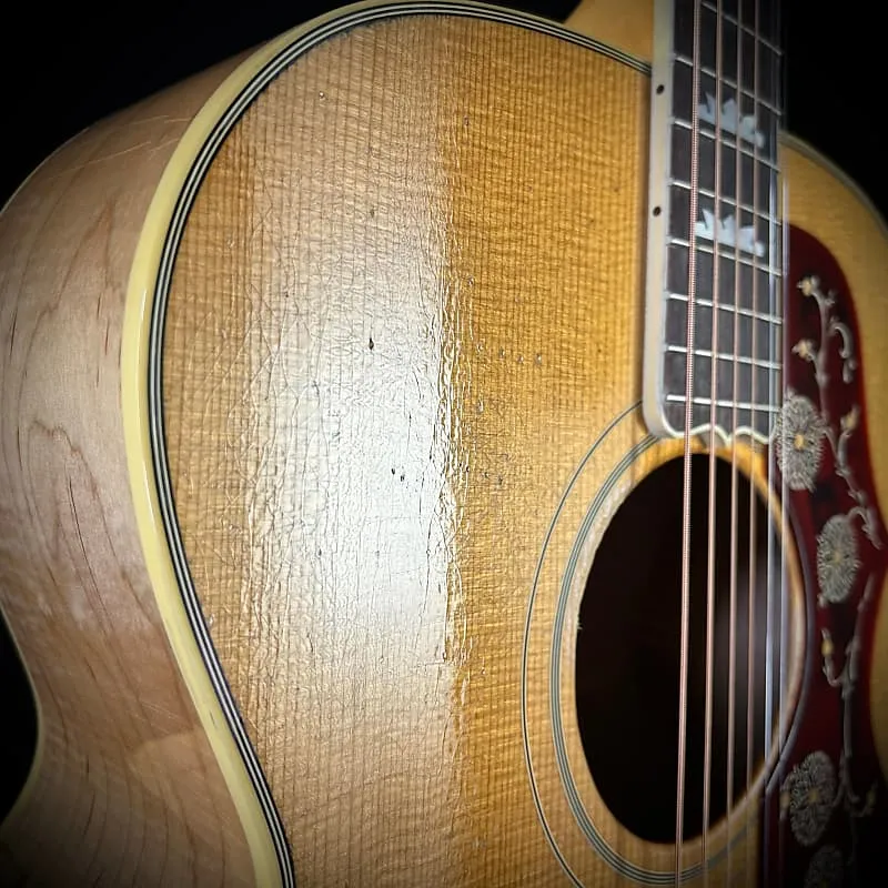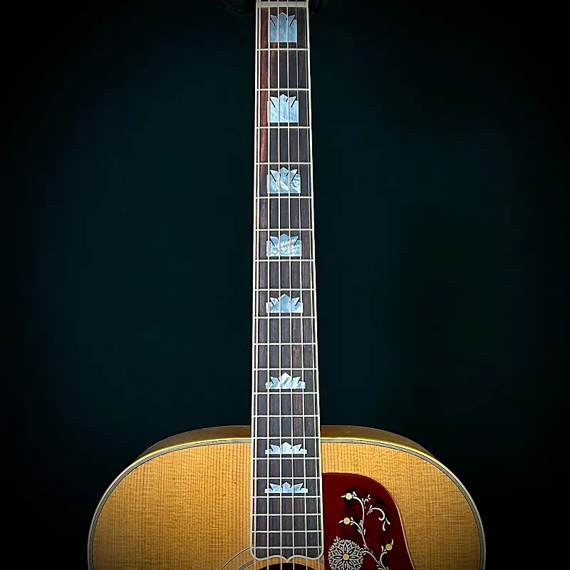 Гитара Gibson SJ-200 была впервые представлена в 1937 году и быстро заслужила прозвище «Король флат-топов» благодаря своему размеру, высокому качеству звука, исключительной проекции и впечатляющему сценическому присутствию. В 1947 году древесина, используемая для боковин и задней панели, была изменена с палисандра на клен. SJ-200 использовалась всеми - от голливудских ковбоев до фолк-исполнителей, от суперзвезд кантри до рок-икон, а винтажные модели SJ-200 пользуются высоким спросом среди коллекционеров. Теперь компания Gibson Custom с гордостью представляет SJ-200 Light Aged 1957 года, верную копию этих величественных винтажных моделей Super Jumbo.