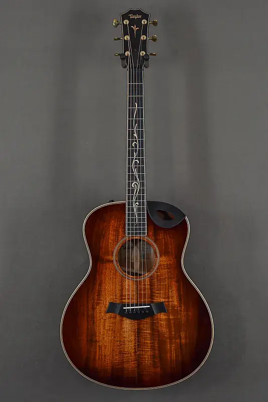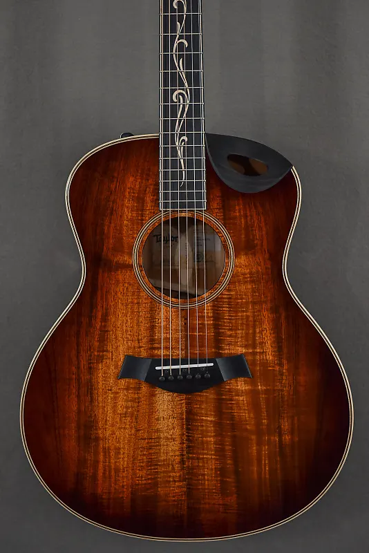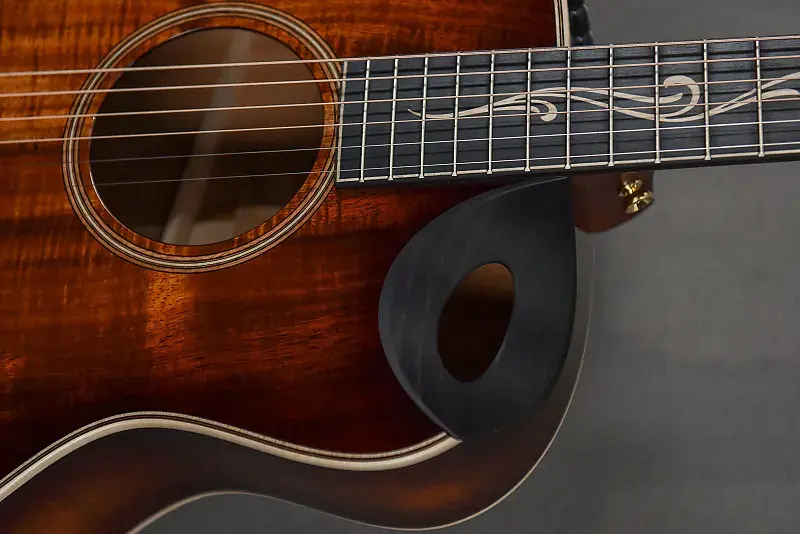 Оттенок Shaded Edgeburst, корпус формы Grand Symphony с венецианским вырезом, верх из гавайского койя, одна кольцевая розетка из клена/палисандра, система распорок V с Relief Rout, двухсплошная спина из гавайского койя и боковины из гавайского койя, светлая непористая окантовка из клена, пальцевая доска из западноафриканского эбенового дерева Crelicam с вставкой из клена Island.