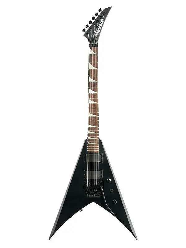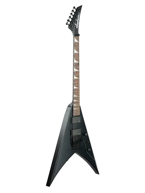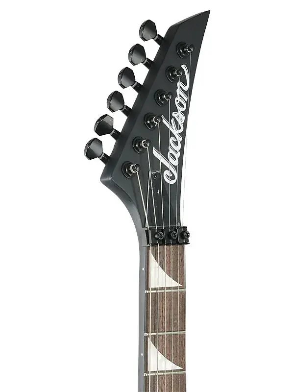Этот королевский топор завершен черной головкой грифа Jackson с 6 струнами в ряд и черной фурнитурой.