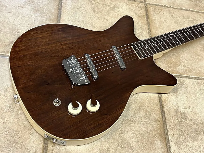 Danelectro выпустила эту модель в 1959 году, назвав ее «Deluxe». Большое преуменьшение! Это горячее переиздание оснащено нашими винтажными звукоснимателями Lipstick 50-х годов, регулируемым бриджем, окантовкой спереди и сзади, ручками-указателями и винтажными колками Gotoh 15:1.