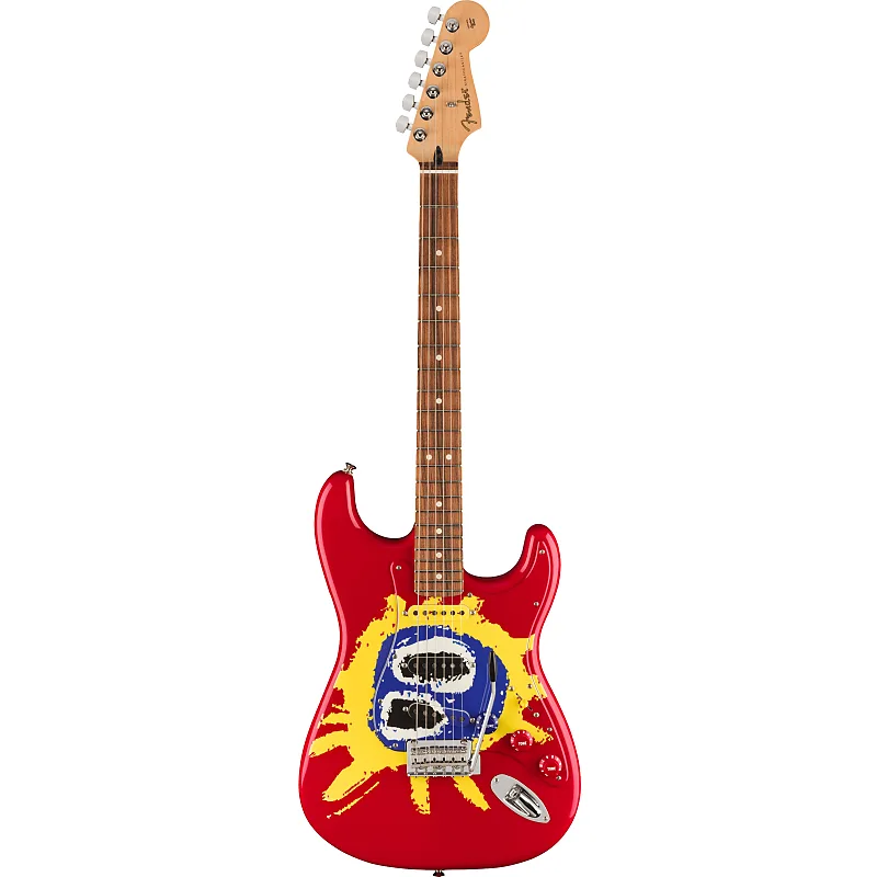 Ограниченное издание Stratocaster в честь 30-летия Screamadelica отмечает этот ключевой альбом уникальной полноцветной графикой с потрясающим красно-желто-синим оформлением альбома, включая подходящую накладку на медиатор, крышки звукоснимателей и ручки.