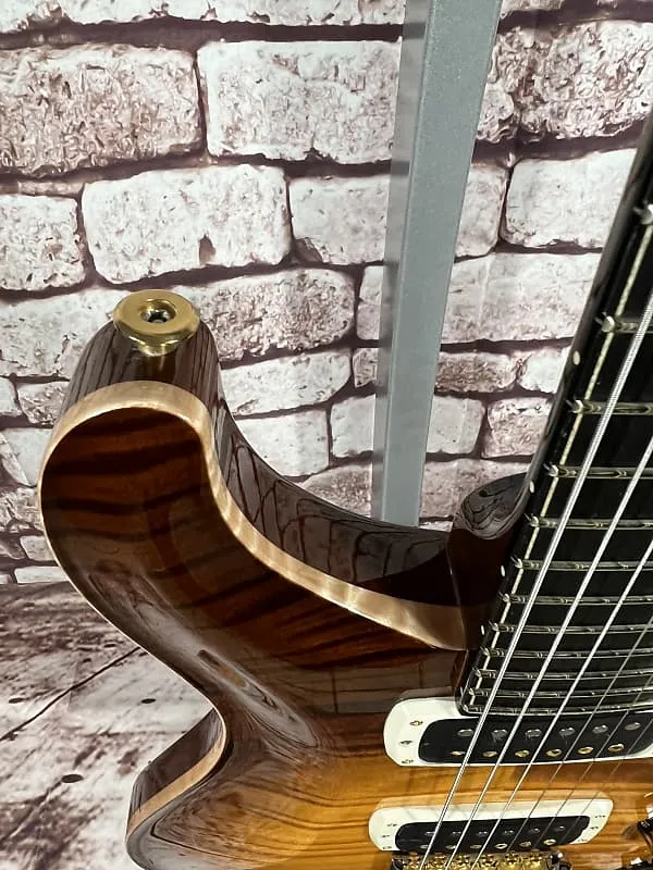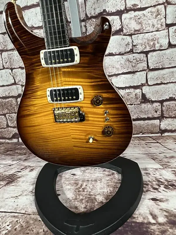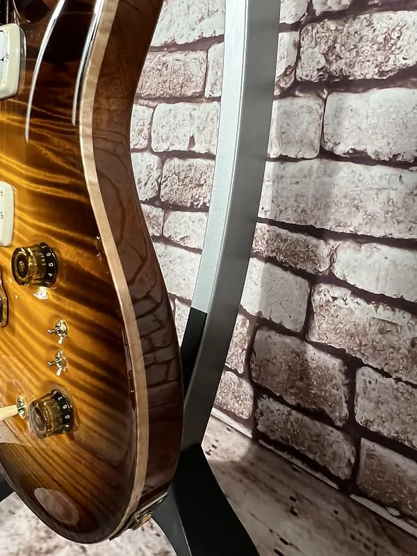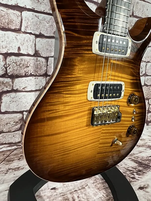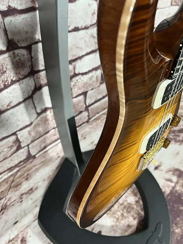 Фурнитура: Золотисто-никелевая тремоло-струна PRS Gen III, колки с блокировкой PRS Phase III и крылышками, задние крышки из африканского махагони и контрольная накладка из кудрявого клена / эбенового дерева