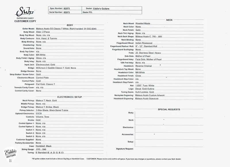 Для получения дополнительной информации о Suhr Mateus Asato Signature Classic T, пожалуйста, свяжитесь с нами.