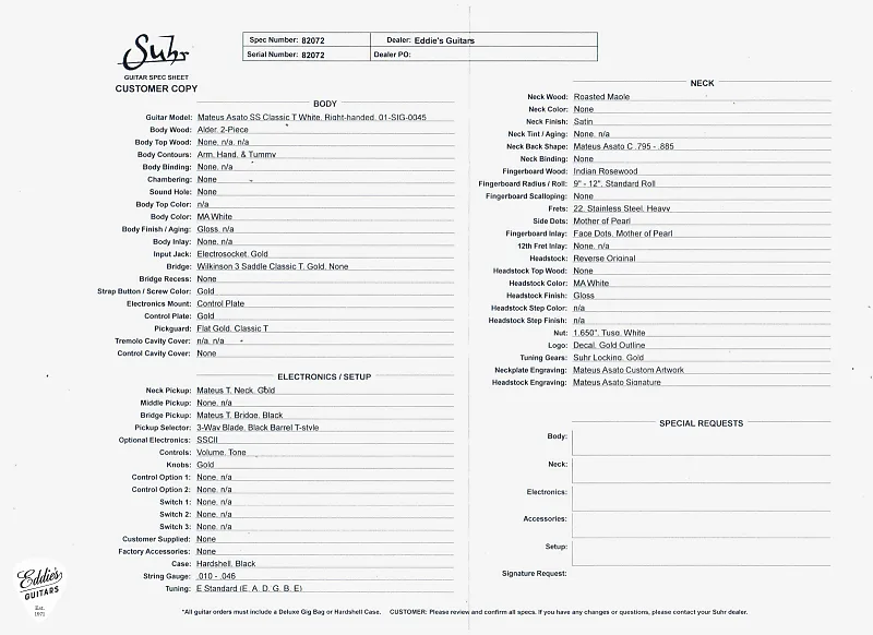 Для получения дополнительной информации о Suhr Mateus Asato Signature Classic T, пожалуйста, свяжитесь с нами.