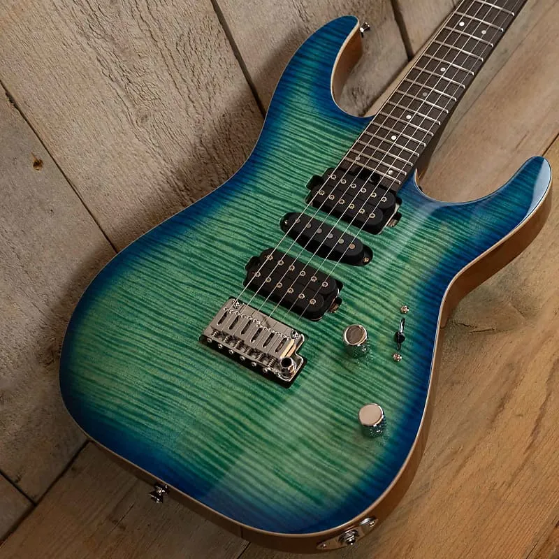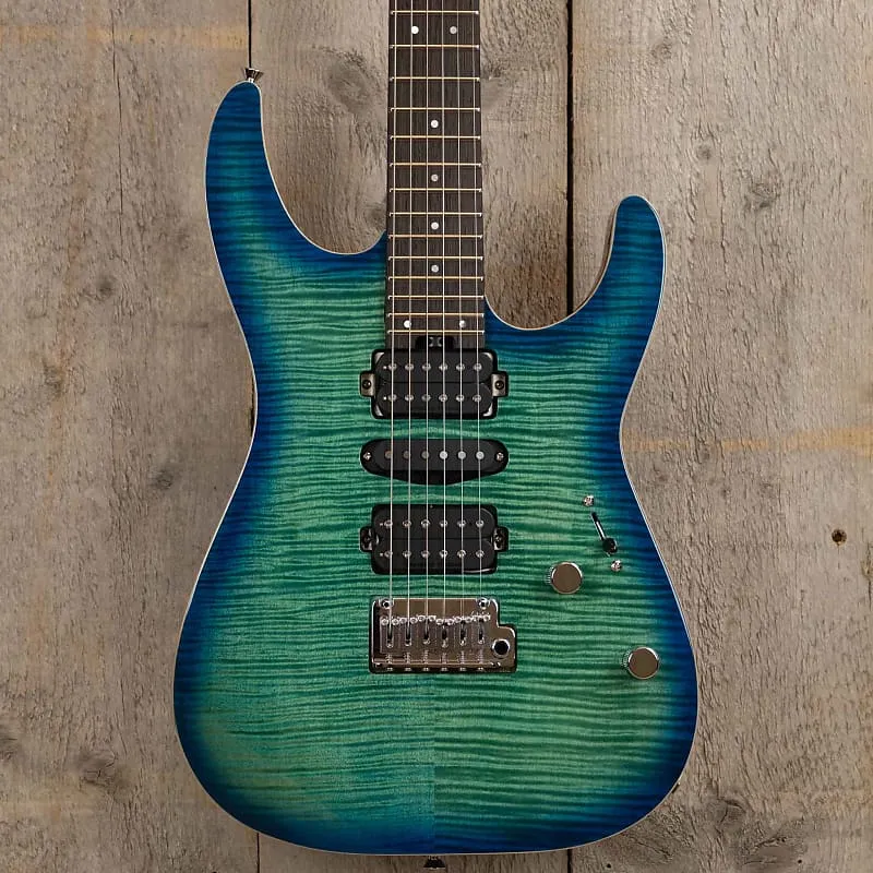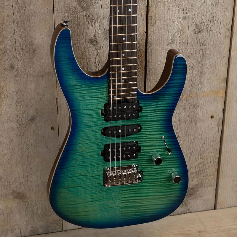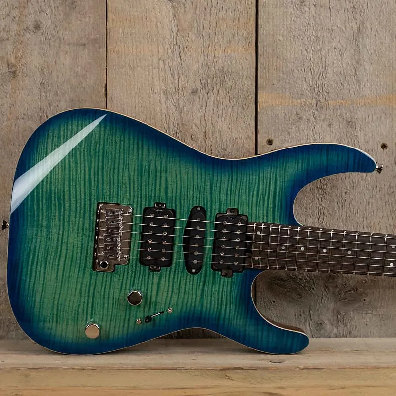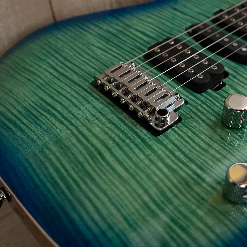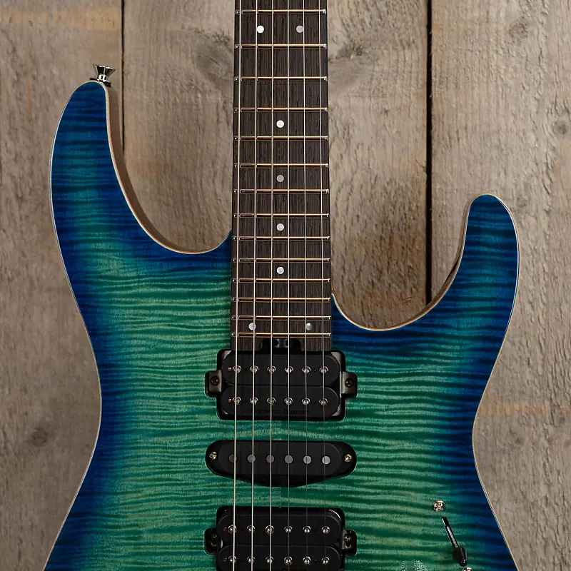Конфигурация звукоснимателей HSH с кастомным Seymour Duncan Full Shred TB-10 хамбакером на бридже, Seymour Duncan Custom Flat Strat SSL-6 сингл-койл посередине и кастомным Seymour Duncan Alnico II Pro APH-1N хамбакером на шее