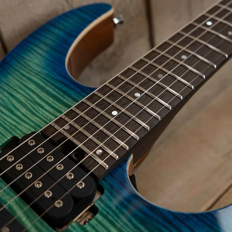 Гриф из венге с составным радиусом 12″-16″ и 24 джамбо ладов из нержавеющей стали и смещенными точечными инкрустациями