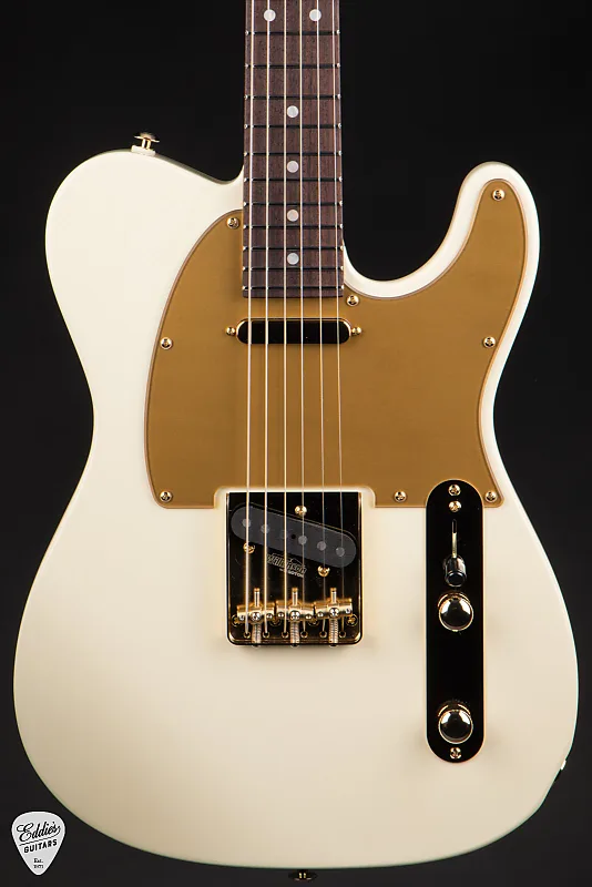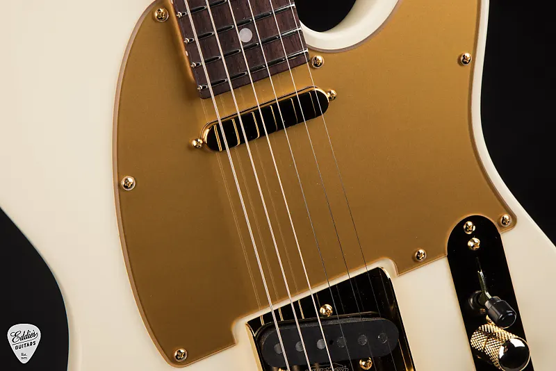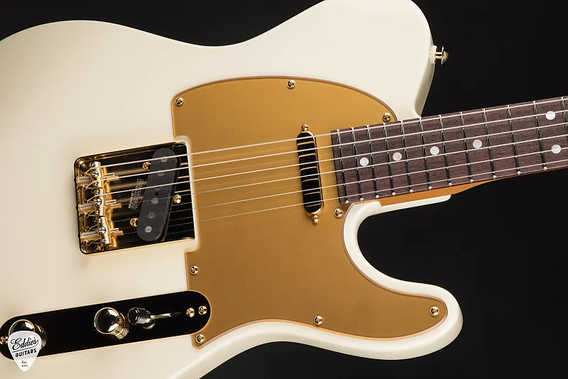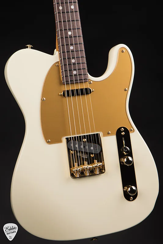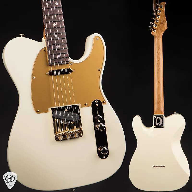 Эта сигнатурная модель имеет вечную Classic T форму корпуса, выполненную из ольхи за ее универсальную тональность и сбалансированный частотный отклик. Независимо от того, стремитесь ли вы к искрящимся чистым звукам или к грубому дисторшену, корпус из ольхи обеспечивает полный, сфокусированный звук, который прекрасно работает в самых разных музыкальных стилях. Отделка - уместно названная MA White - гладкая, элегантная и выразительная, служащая чистым полотном для роскошных акцентов гитары. Смелый матовый золотой накладочный щиток задает тон остальному элегантному оборудованию гитары, добавляя изысканный контраст, излучающий бутик-класс.