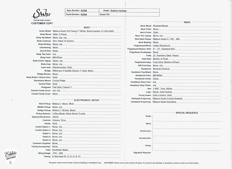 Для получения дополнительной информации о Suhr Mateus Asato Signature Classic T, пожалуйста, свяжитесь с нами.