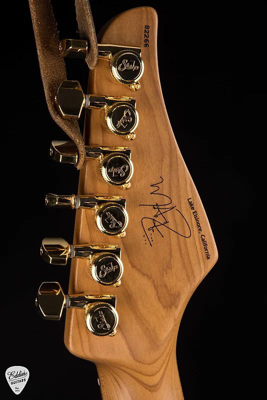 Сатиновая отделка грифа обеспечивает гладкую, не липнущую поверхность для игры, в то время как глянцевая отделка головки грифа добавляет блеска и элегантности. Лазерно выгравированный золотой логотип Suhr завершает образ утонченным, высококлассным акцентом. Каждый визуальный элемент кажется продуманным и изысканным - что отражает художественную чувствительность Матеуса.