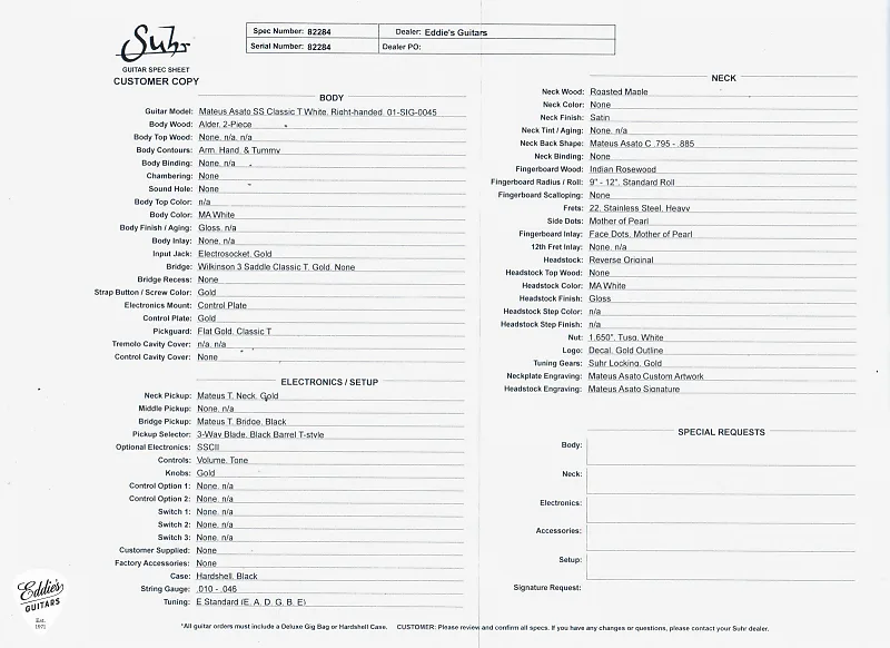 Для получения дополнительной информации о Suhr Mateus Asato Signature Classic T, пожалуйста, свяжитесь с нами.