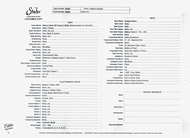 Для получения дополнительной информации о Suhr Mateus Asato Signature Classic T, пожалуйста, свяжитесь с нами.