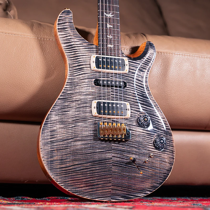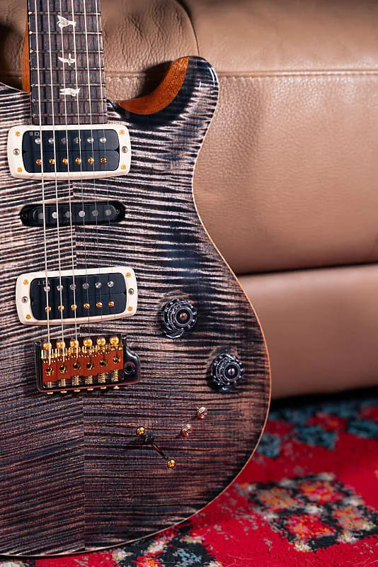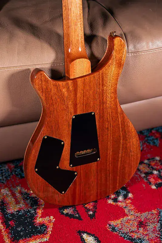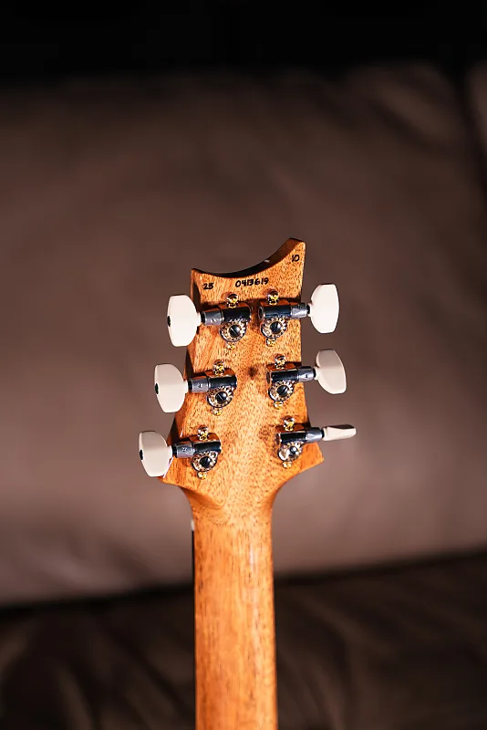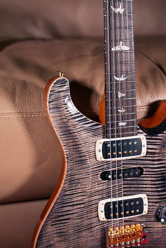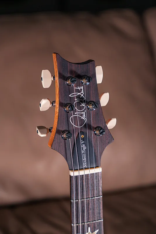 "Modern Eagle V предлагает очень музыкальные тона как для записи, так и для живых выступлений. Сочетая в себе классическое и современное, Modern Eagle V построен на проверенной основе: кленовая дека и корпус из красного дерева, гриф Pattern из красного дерева с накладкой из палисандра, 22 лада, мензура 25", кость на порожке, колки PRS Phase III и фирменный тремоло PRS Gen III. Его инновационная схема звукосъемников и электроники предоставляет широкий диапазон тонов под рукой.