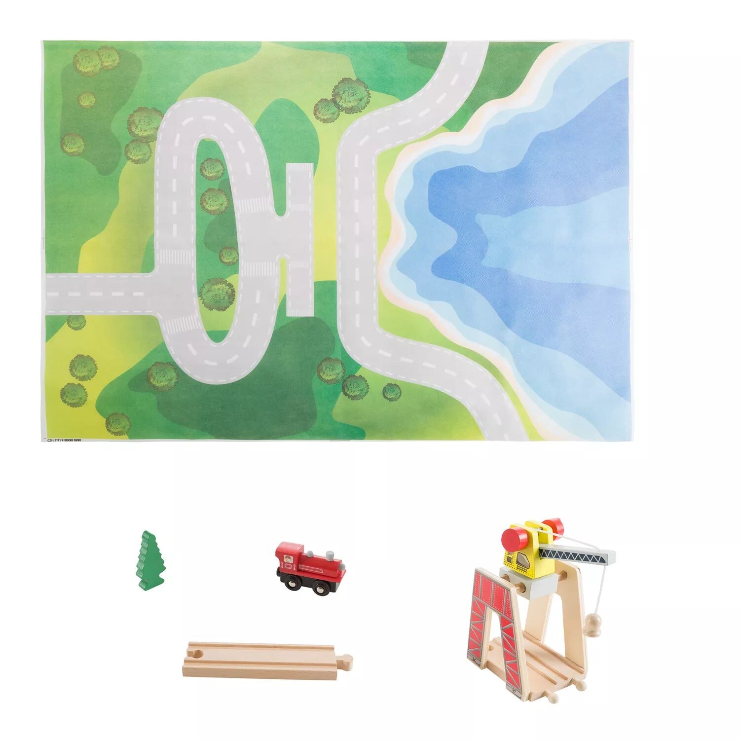 Это эй! Играть! Набор деревянного поезда с игровым ковриком — идеальное занятие в дождливый день!