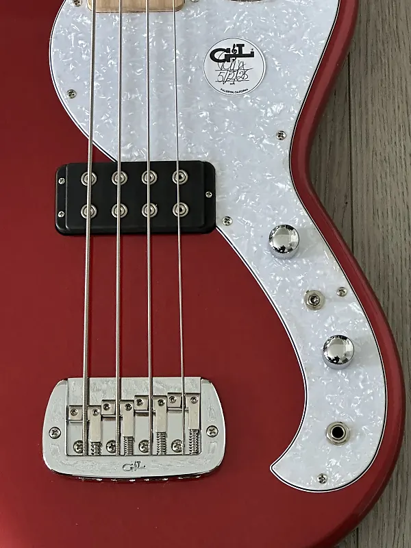 Другие особенности включают корпус из тополя, кленовую накладку на гриф с болтовым креплением, кленовую накладку грифа, мост Saddle-Lock, колки G&L и струны D’Addario Nickel Roundwound короткой шкалы, .045-.065-.080-.100.