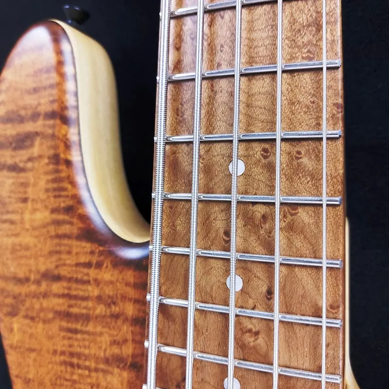 - Накладка на гриф: Капучино прожаренный твердый клен с рисунком "birdseye" и инкрустацией из перламутровых точек