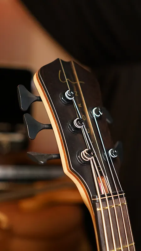 Это полностью ручной работы бас-гитара с короткой мензурой 30" с кастомным звукоснимателем и инновационным 3-позиционным переключателем, встроенным прямо в корпус звукоснимателя. Без ручек, без отвлекающих элементов - только чистый звук, напрямую подключенный к выходному разъему для максимальной сохранности сигнала.