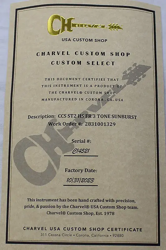 Charvel CCS ST2 HS FR USA Custom Shop Custom Select
