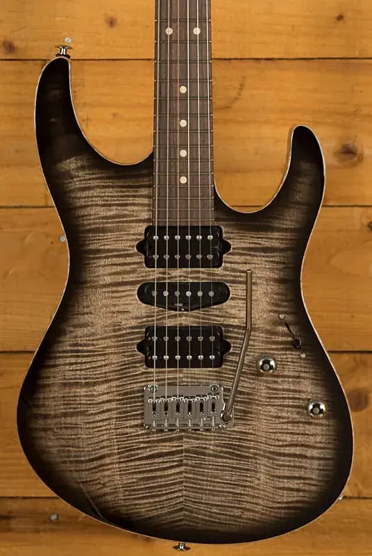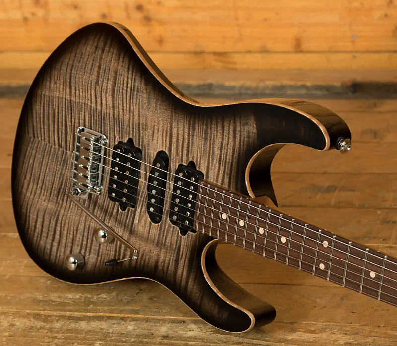 С корпусом из липы и пышной крышкой из клена Flame Maple, он обладает превосходным звучанием, малым весом и прекрасно сбалансирован для игры. Suhr выполнили его в цвете Trans Charcoal Burst и применили контуры для руки, ладони и живота для максимально комфортной игры.