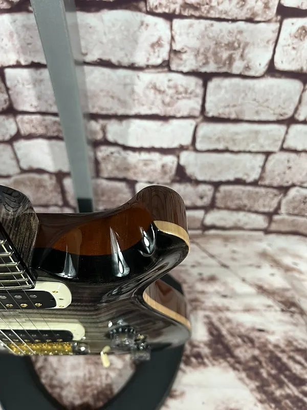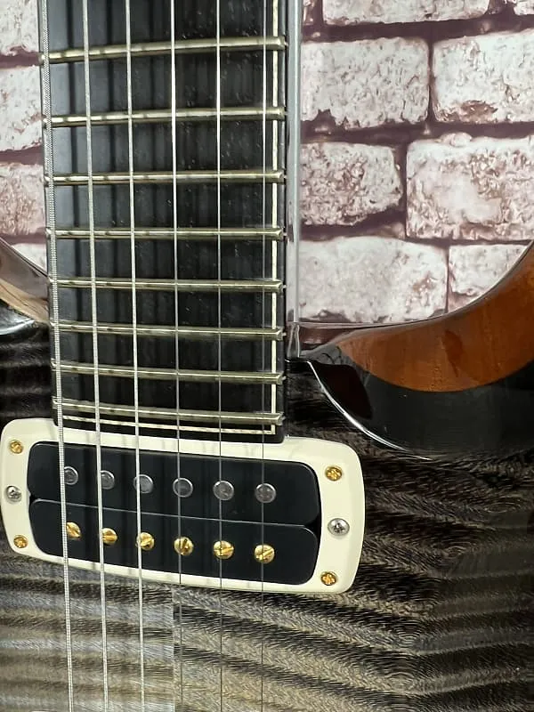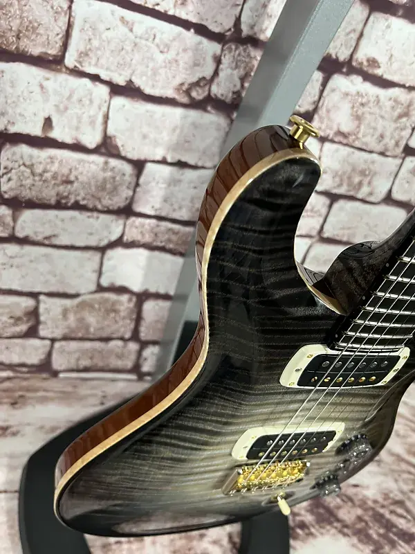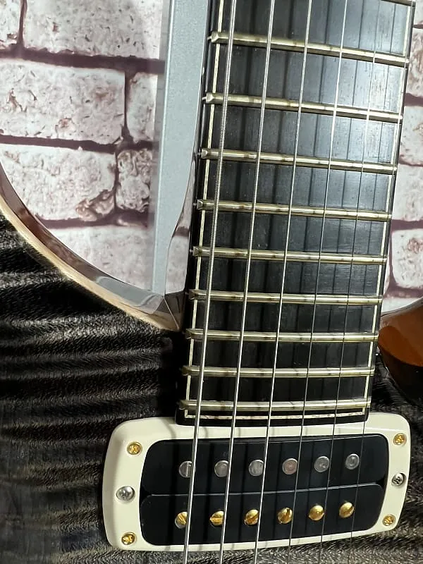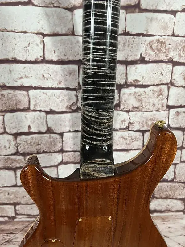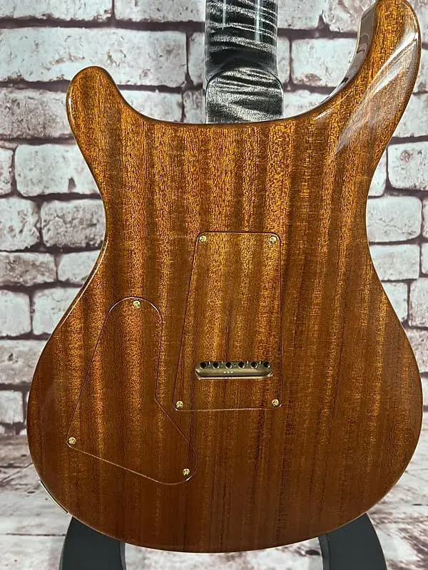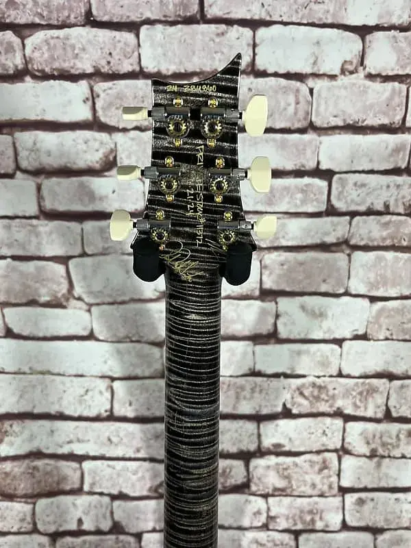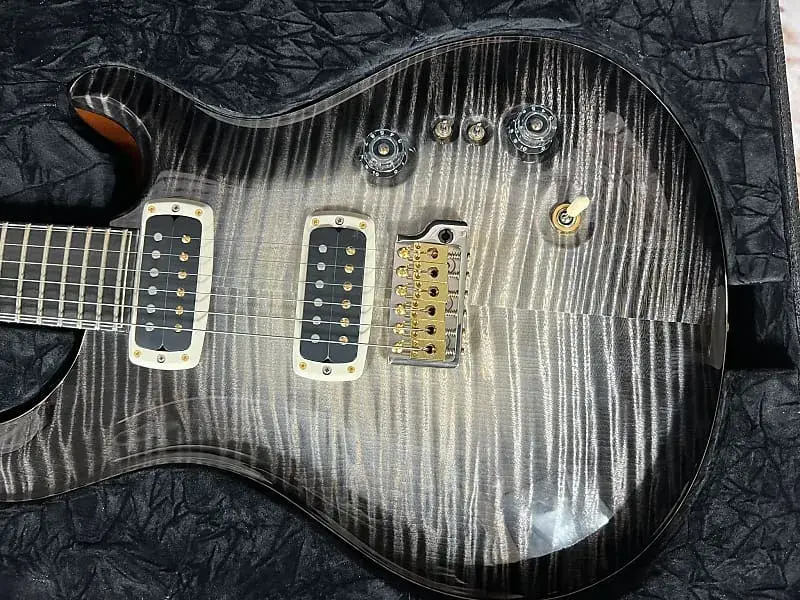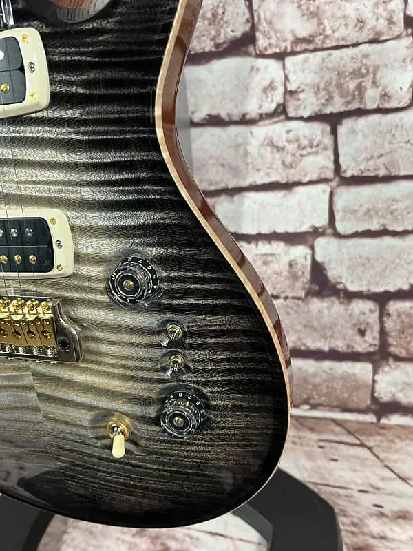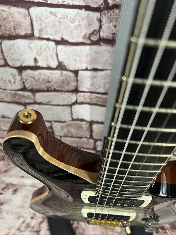 - Фурнитура: золотой/никелевый тремоло-мост PRS Gen III, блокирующая колковая система PRS Phase III с крыловидными кнопками, задние накладки из африканского махагони и крышка анкерного стержня из кудрявого клена / эбенового дерева